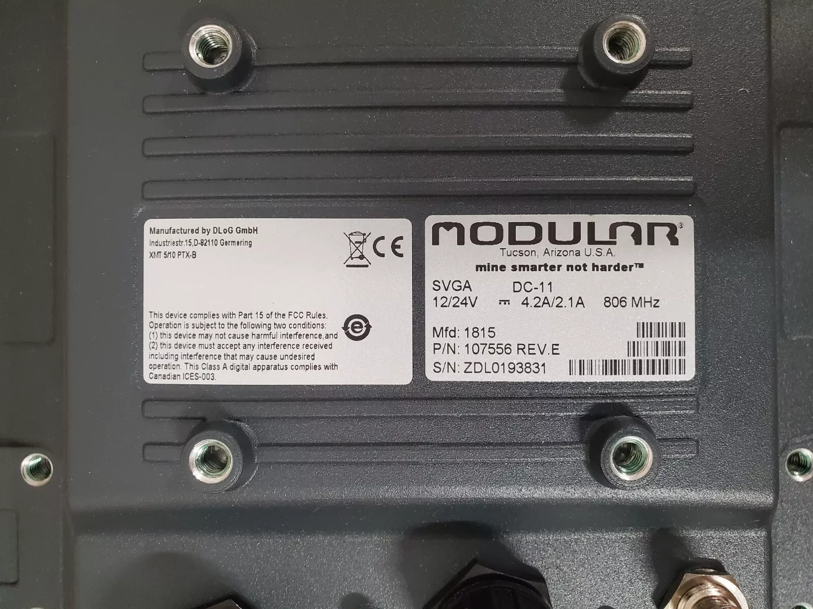 Product Name | Modular Mining XMT 5/10 PTX-B Vehicle PC Interface DLoG |
