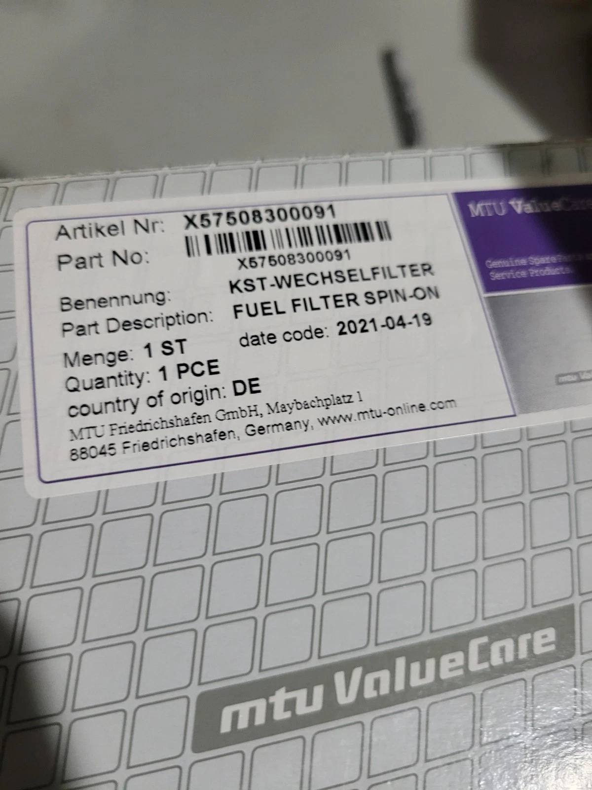 Product Name | Fuel Filter Spin-on |